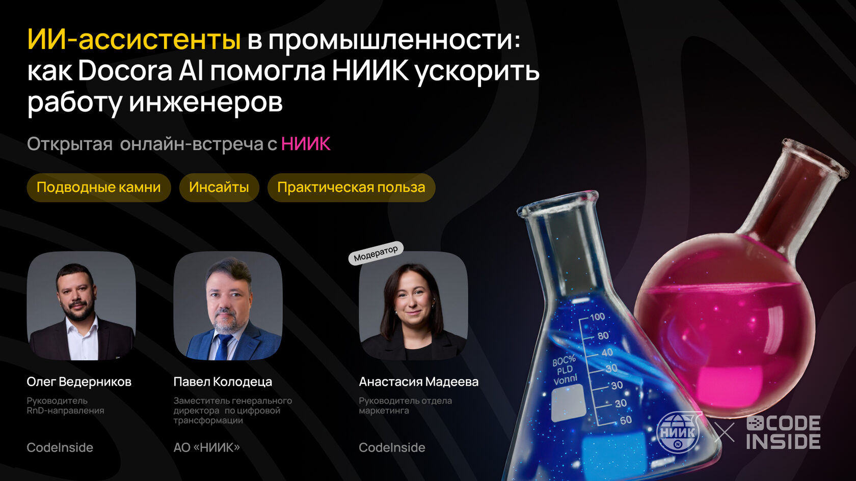 Если вы не успели на наш онлайн-митап с АО «НИИК» о том, как ИИ помогает ускорять инженерные процессы в химической промышленности — теперь можно посмотреть всё в удобное время.